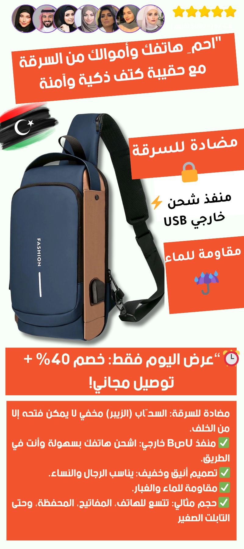 مميزات تصميم الحقيبة :معالجة مقاومة للماء ، حزام كتف ، حزام كتف واحد ، أحزمة كتف جيدة التهوية ، مقاوم للماء ، ظهر مبطن